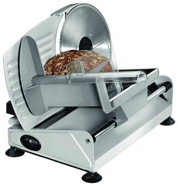 - Лезвие диаметром 19 см легко режет свежий хлеб, мягкие овощи и колбасные изделия, не деформируя их структуру.