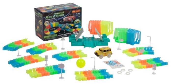 | Подробная комплектация : | мост, трек гибкий, машинка легковая, дорожные знаки |