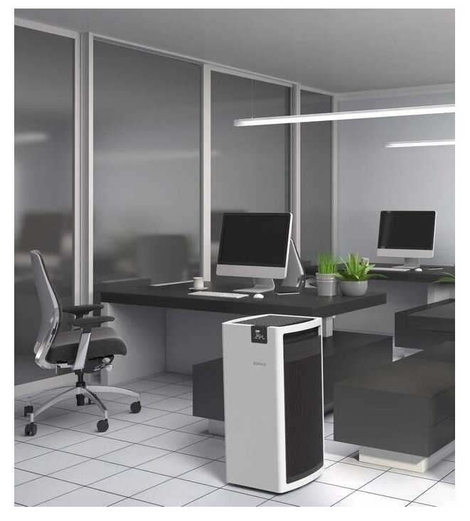 Взяли этот очиститель в офис. Помещение у нас большое. Очиститель справляется на ура. Воздух стал заметно чище, даже запахи от еды из соседнего кафе теперь не так сильно ощущаются. Работает тихо, не отвлекает от работы. Удобно, что есть колесики, можно легко перемещать по офису. Решение для больших помещений.