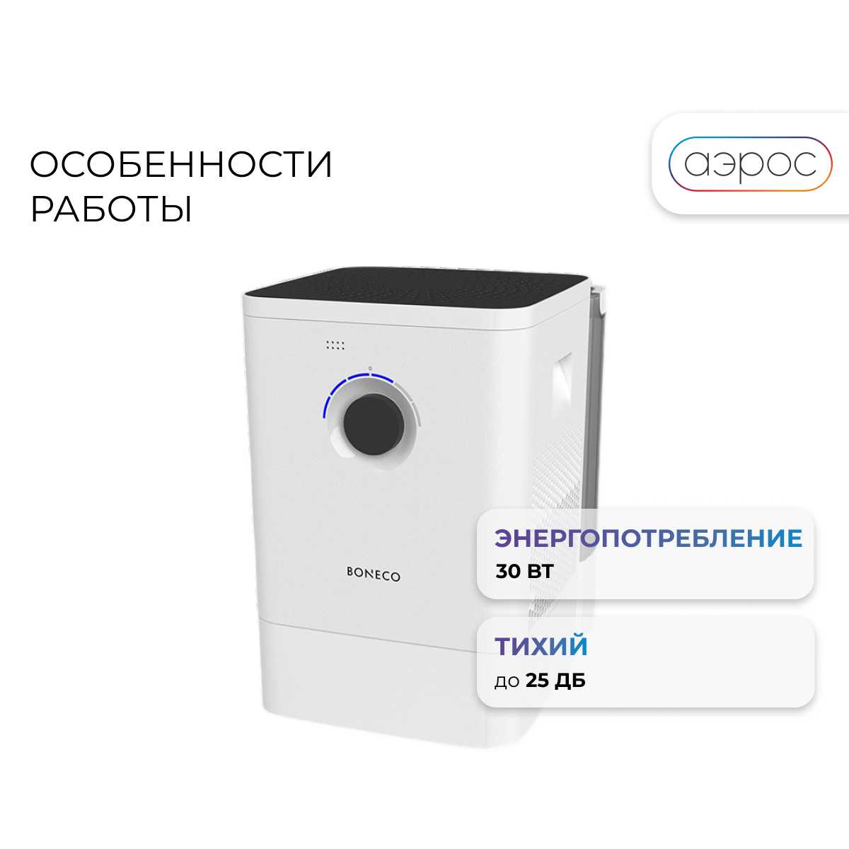 Одно из главных преимуществ Boneco W400 — это его тихая работа. Даже на средних скоростях шум минимален и совершенно не мешает ни работе, ни сну. Это особенно важно, так как я использую его в спальне.