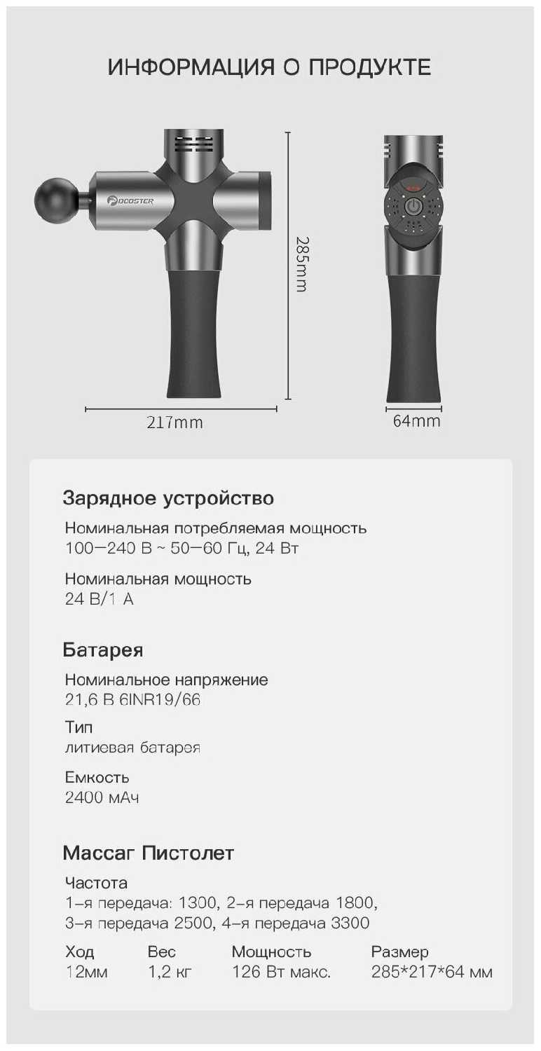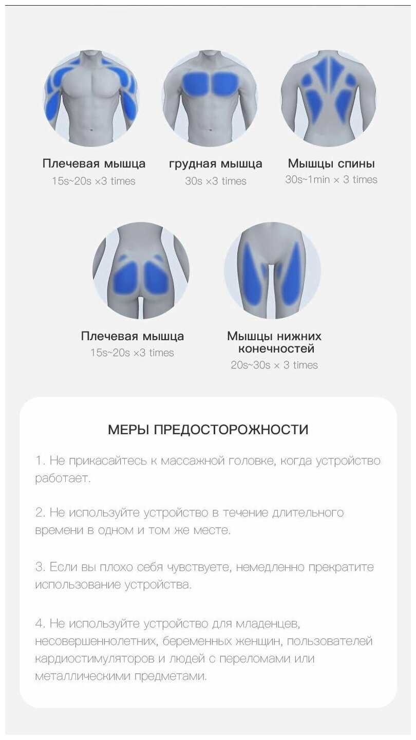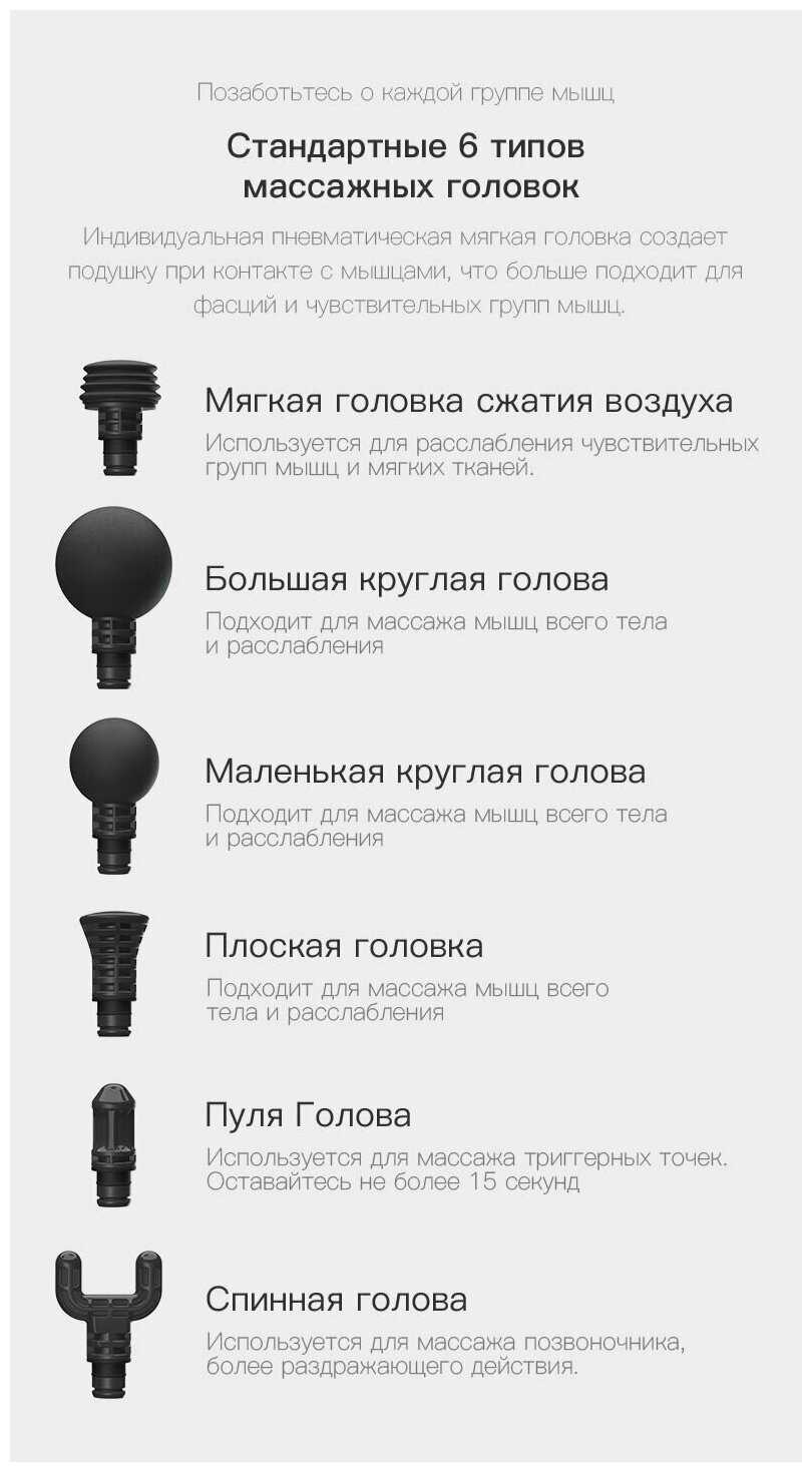 - Нет инструкции по зональному применению насадок, что затрудняет правильный выбор для конкретных мышц.