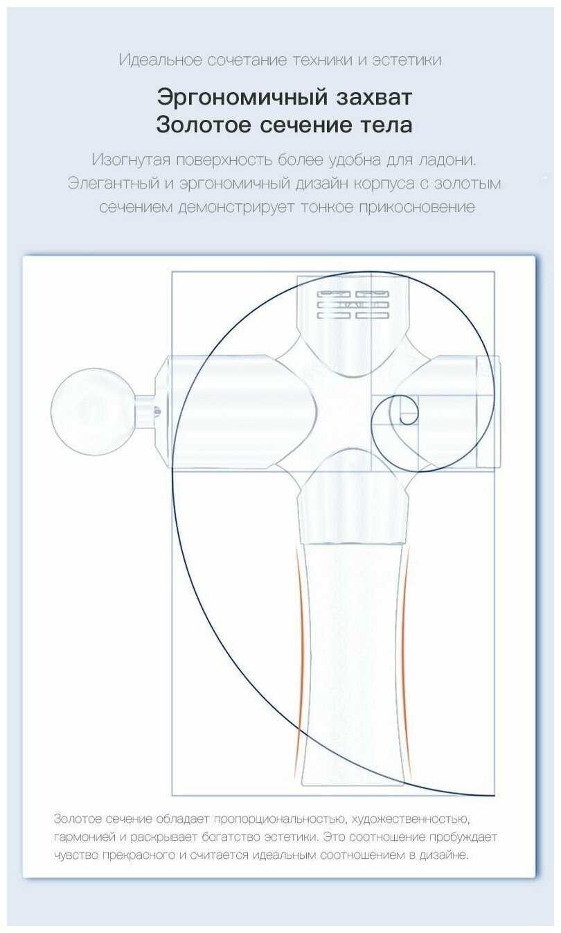 Из-за веса (отмеченного в 70% отзывов) устройство требует привыкания: при обработке обширных зон (спина, бёдра) рука устаёт, особенно у миниатюрных пользователей. Однако эргономичная ручка с выступом для упора и инерционная стабилизация гасят вибрацию, а после адаптации массаж становится комфортным. Для труднодоступных мест или мелких мышц (например, шеи) рекомендуется помощь другого человека. -