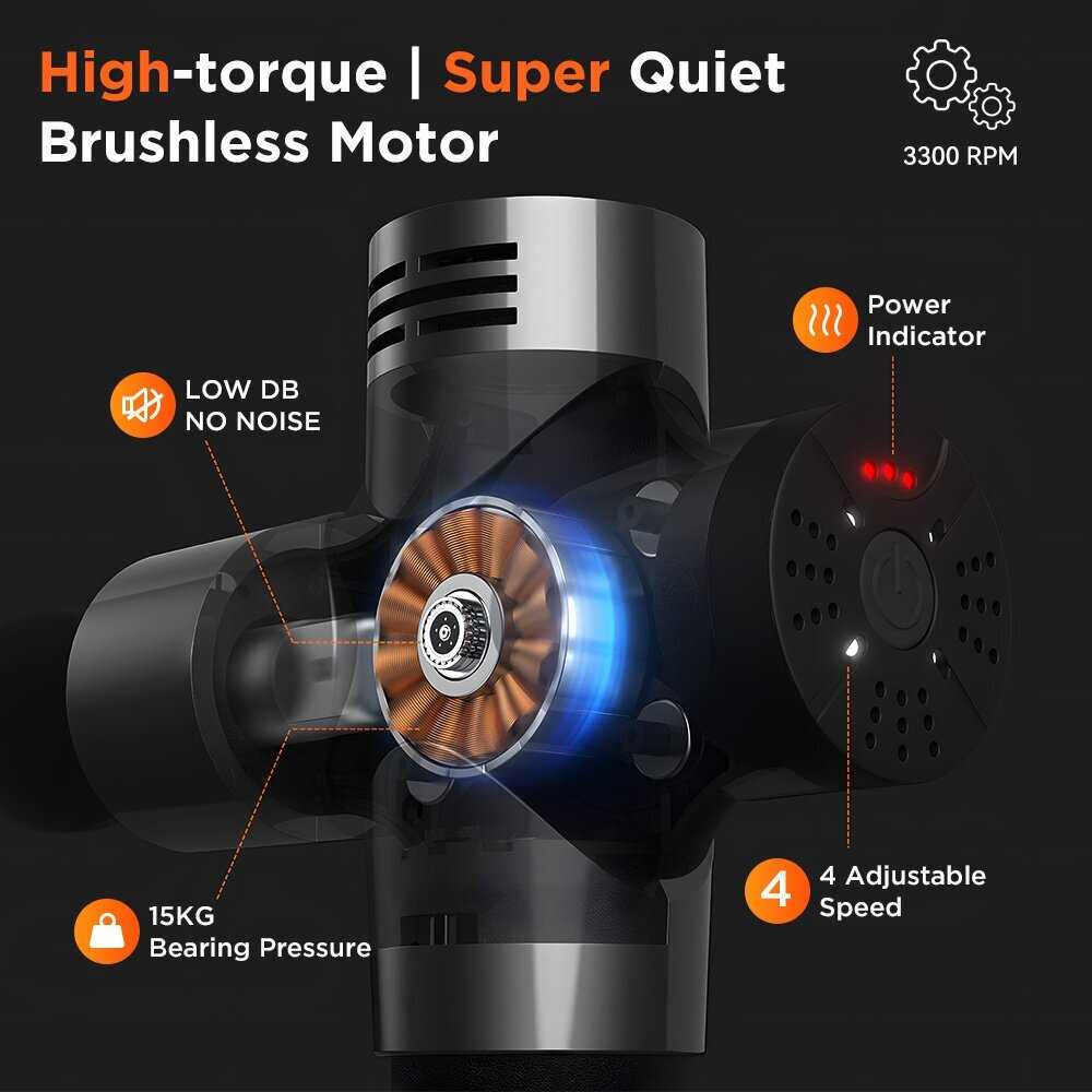 Массажер обладает впечатляющей мощностью, которую пользователи описывают как "земля и небо" по сравнению с более дешевыми аналогами (например, упоминается Booster R-8). Диапазон ударов от 1300 до 3300 в минуту позволяет подобрать интенсивность для разных задач и чувствительности. Ключевая особенность – стабильность работы при усилии: при увеличении давления на массируемую область аппарат автоматически повышает мощность, сохраняя заданную частоту ударов. Это выгодно отличает его от конкурентов, у которых при сильном нажатии двигатель может перегреться или сгореть (как произошло с Booster R-8 у одного пользователя). Мощность считается достаточной для профессиональных нужд, сравнима с топовыми брендами вроде Yamaguchi или Hypervolt, а по субъективным ощущениям некоторых – даже превосходит их.
