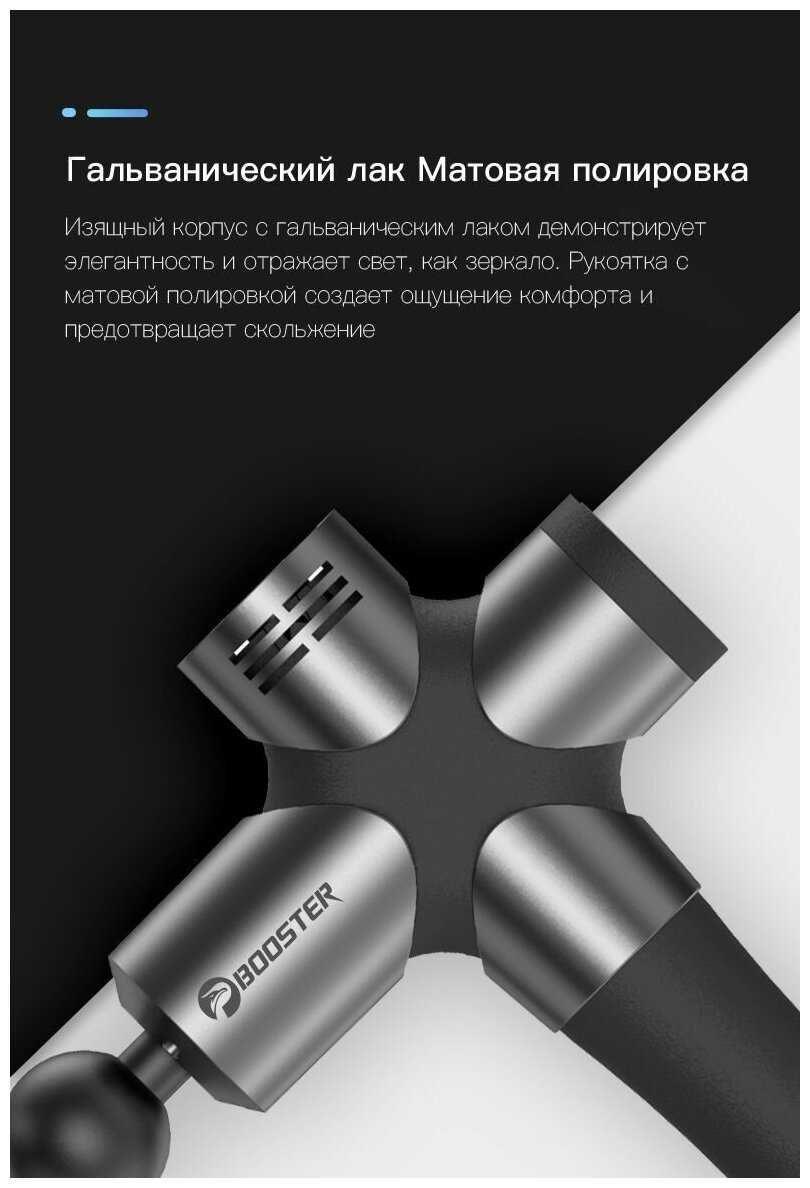 Ключевое отличие — стабильность удара под нагрузкой: при сильном надавливании частота не падает (в отличие от Booster R-8, где двигатель перегорал в турборежиме). Амплитуда 12 мм глубже прорабатывает ткани, чем аналоги с 8–10 мм, а чемодан с евроадаптером расширяет возможности использования. Однако для точечного массажа лица или кистей он менее удобен.