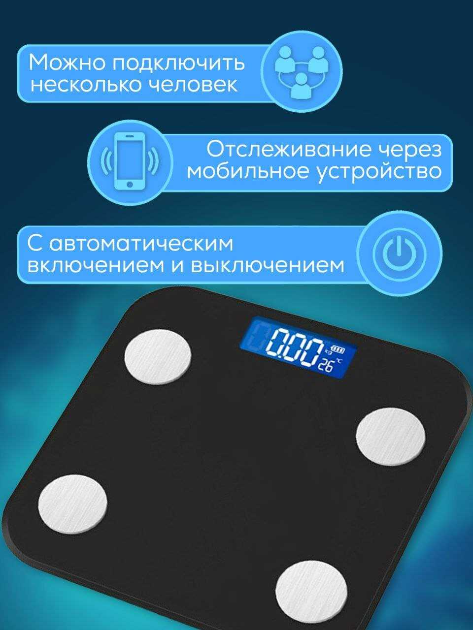 Есть приложение, где можно отследить вес и качество тела. Правда только на одного пользователя. Товаром довольна, свои функции выполняет. Главное найти ровное место и не передвигать)