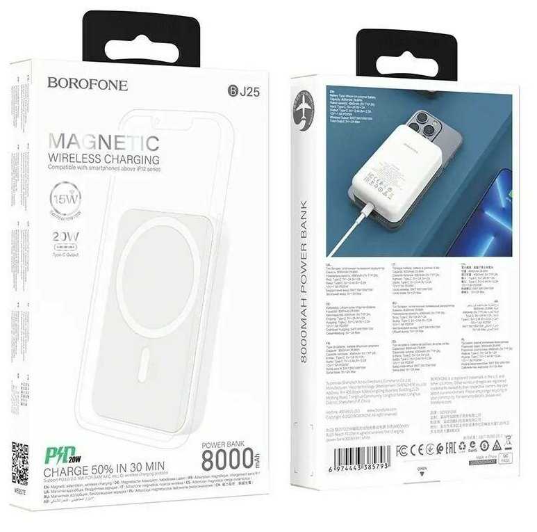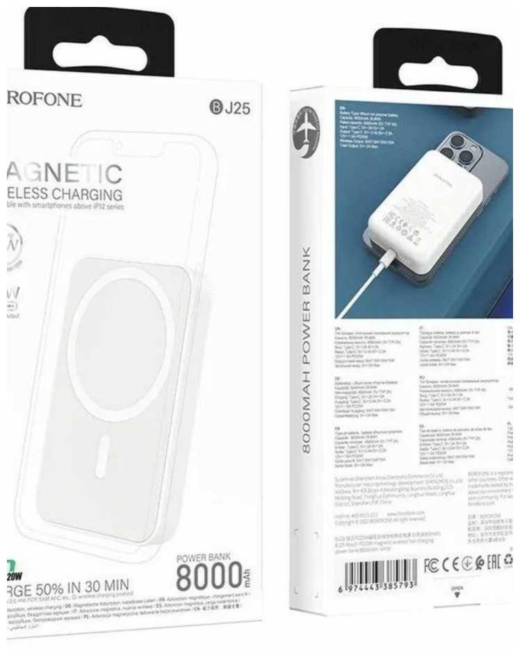 Отзывы о Внешний аккумулятор MagSafe Borofone BJ25, 8000 mAh, белый
