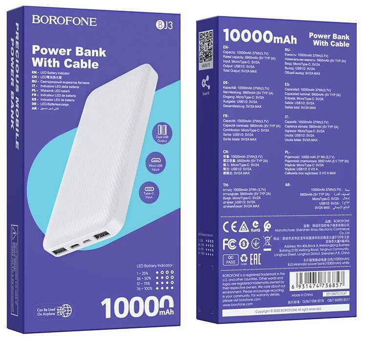 Отзывы о Портативный аккумулятор Borofone BJ3 Minimalist 10000mAh