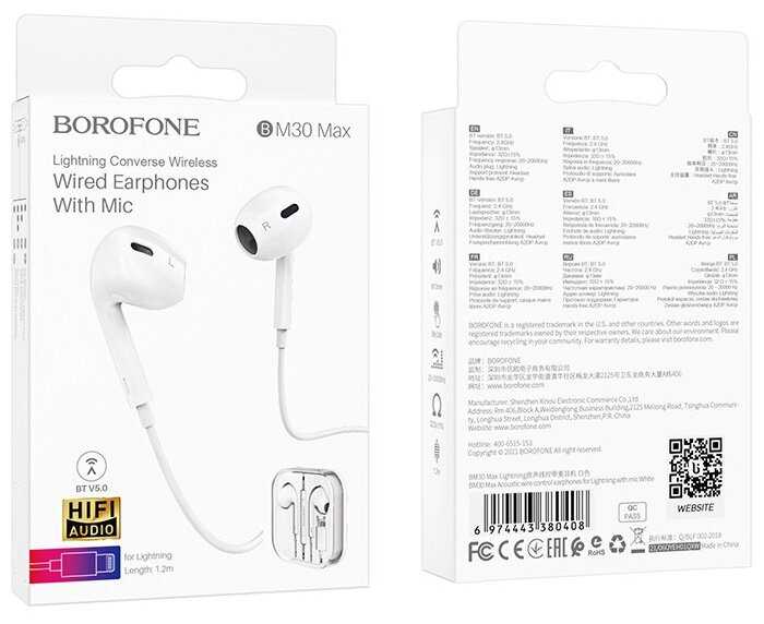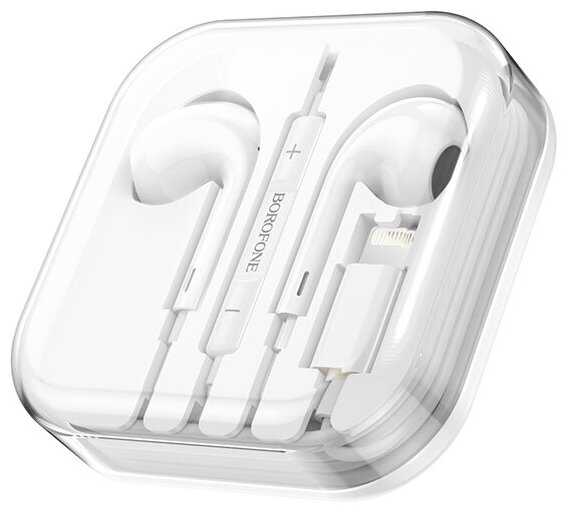 12 отзывов пользователей o Borofone BM30 Max Acoustic wire control earphones Lightning with mic Lightning белая