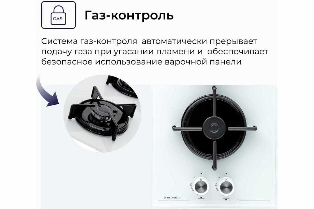 - Газ-контроль автоматически отключает подачу газа при погасшем пламени, предотвращая утечки и повышая надежность эксплуатации.