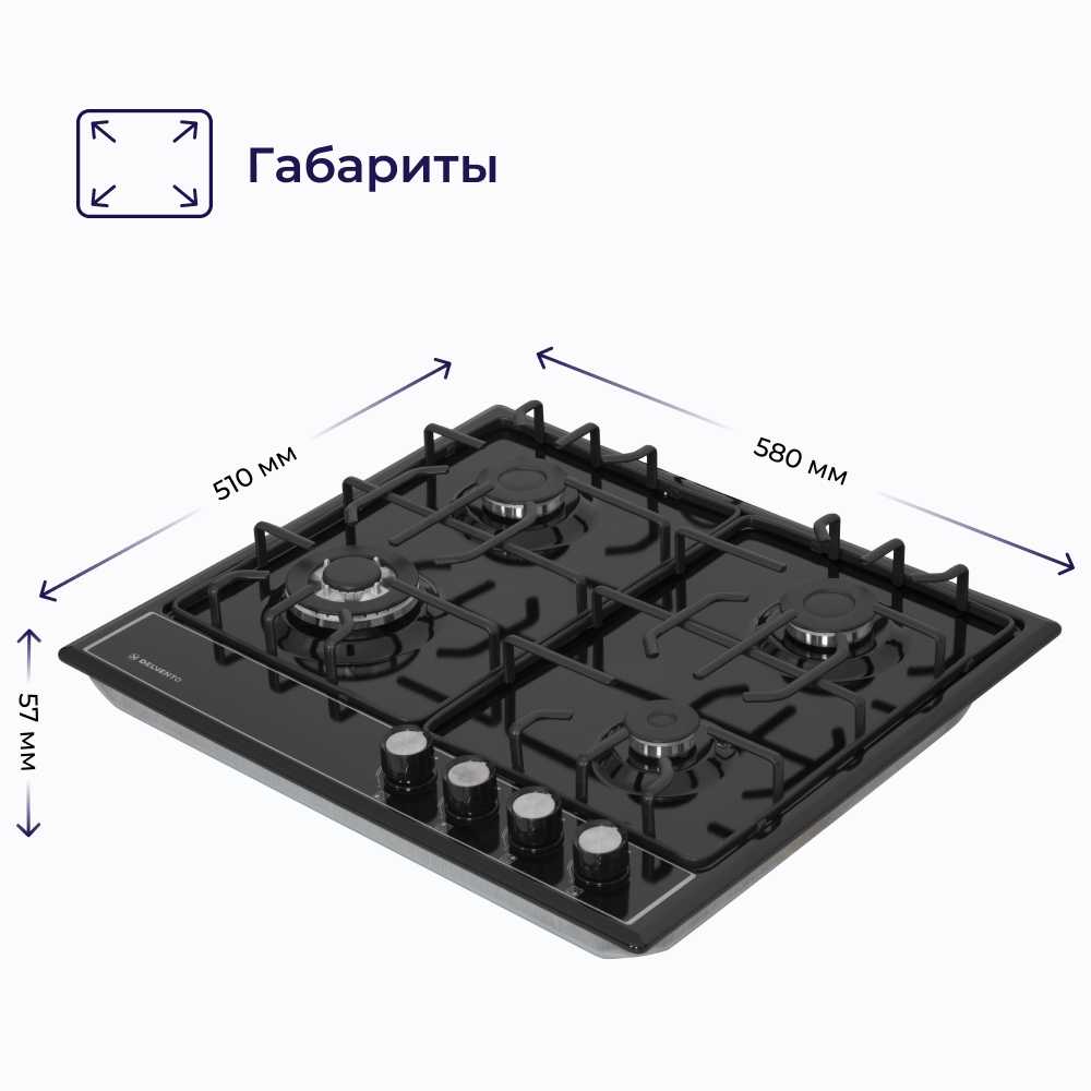 Базовая система безопасности включает газ-контроль, автоматически перекрывающий подачу газа при затухании пламени, и электроподжиг, исключающий необходимость использования открытого огня для розжига. На некоторых моделях присутствуют индикаторы остаточного тепла, предупреждающие о температуре конфорок после выключения. Однако блокировка управления от детей или защита от случайного включения встречаются не во всех модификациях, что следует уточнять перед покупкой, если в доме есть маленькие дети. -