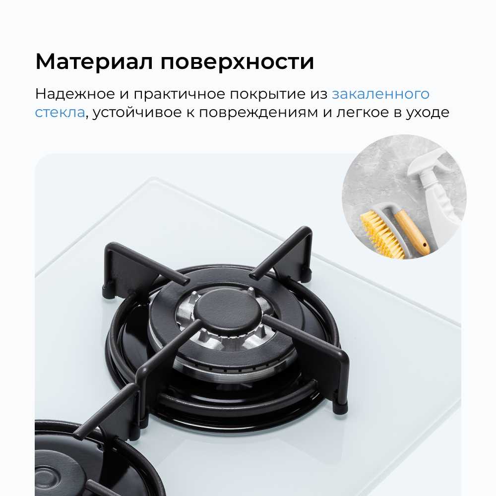 Эргономика, удобство использования и практичность в эксплуатации: Панель позиционируется как компактное решение для малогабаритных кухонь, и большинство пользователей подтверждает, что ее размеры и три конфорки оптимальны для небольшой семьи. Расположение конфорок признано удачным, позволяющим одновременно размещать крупную посуду, не создавая тесноты. Чугунные решетки оцениваются как массивные и устойчивые, они не скользят, однако их фактический дизайн может отличаться от ожидаемого. Плавность регулировки мощности пламени позволяет точно контролировать процесс готовки. Поверхность из стеклокерамики легко очищается от загрязнений. К существенным эксплуатационным недостаткам можно отнести сильный нагрев ручек регулировки газа при длительной готовке, что создает риск ожога. Комплектный электрический кабель для подключения электроподжига часто оказывается слишком коротким, требуя использования удлинителя. Глубина и конструкция конфорок не всегда удобны для использования традиционной посуды, например, турки для кофе.