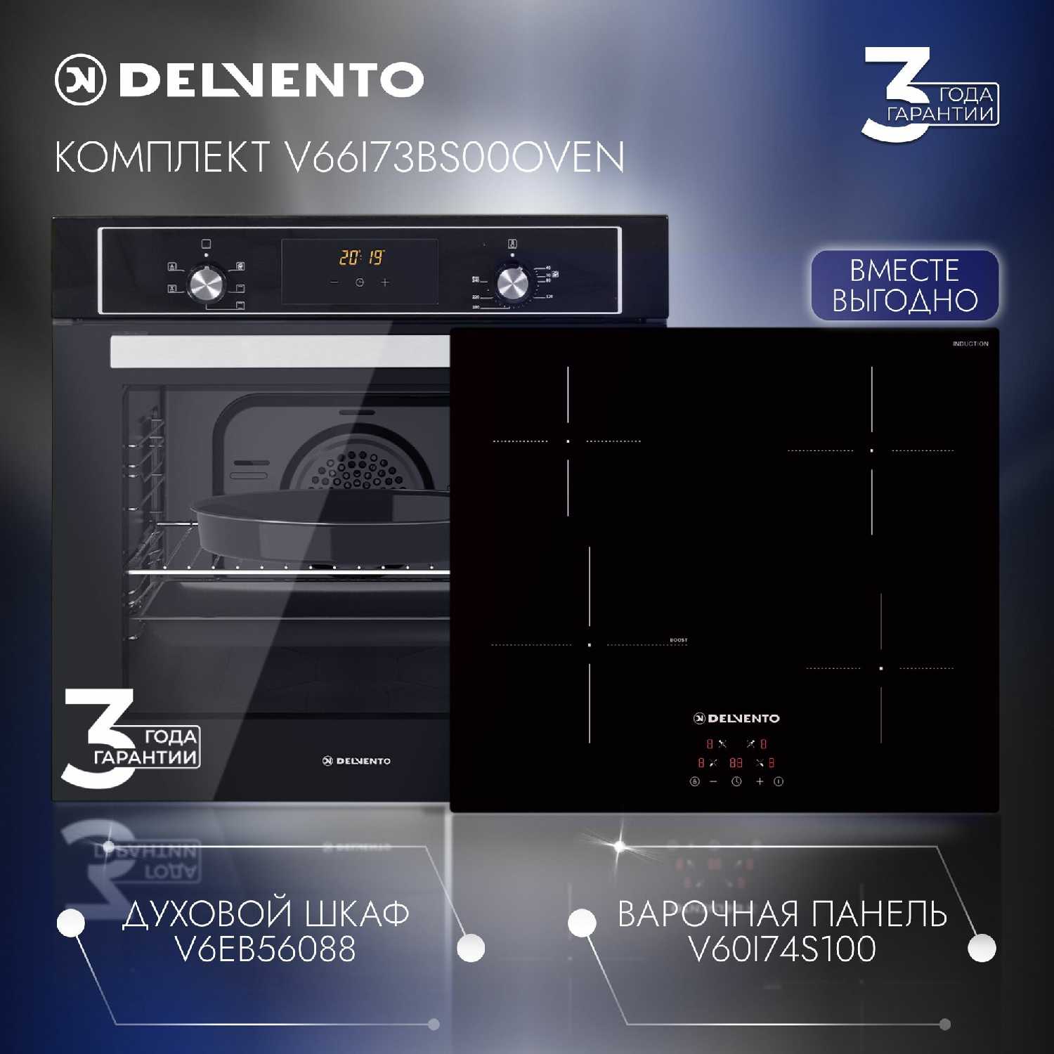 Отзывы о Комплект встраиваемой бытовой техники DELVENTO V66I73BS00OVEN (индукционная варочная панель 60см + электрический духовой шкаф 60см)