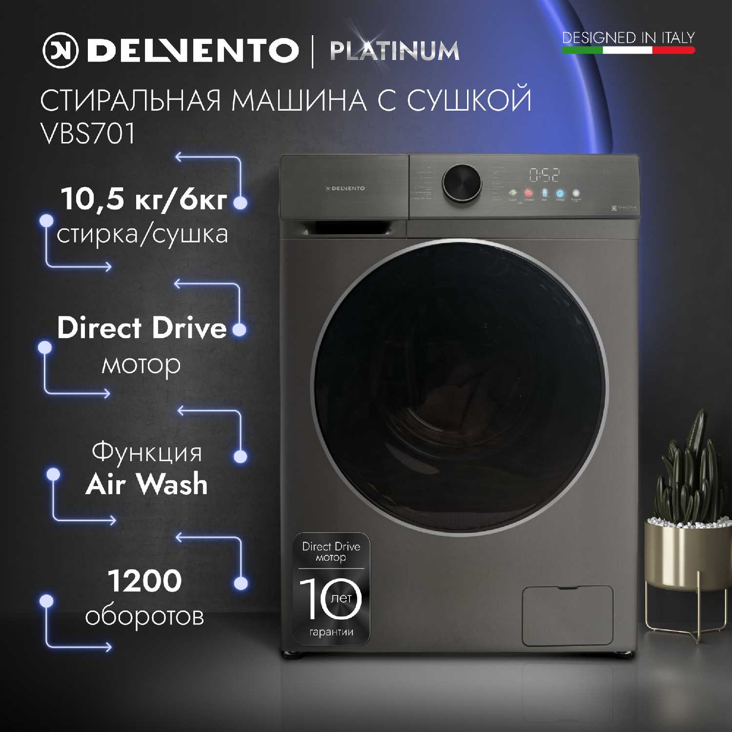 Отзывы о Стирально-сушильная машина DELVENTO VBS701 (10,5кг, 1200об/мин)