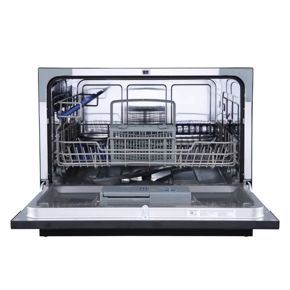Вместимость, размеры и дизайн: Машина компактная, с размерами, подходящими для маленьких кухонь в панельных домах, и занимает минимум места, как отмечают 100% пользователей. Вместимость 6 комплектов посуды достаточна для семьи из 2-3 человек, включая тарелки, кружки и приборы, но не для всех кастрюль одновременно. В 10% отзывов упоминается возможность загрузки сковородок, сотейников и банок, но большие тарелки диаметром свыше стандартного не помещаются из-за ограниченной высоты. Полузагрузка позволяет использовать при меньшем объеме, что удобно для пары. Дизайн стильный, лаконичный, вписывается в интерьер, особенно в черном или под цвет кухни, по 50% отзывам. Корпус прочный, с качественной сборкой, и внешняя панель не подвержена влаге. Для 10 комплектов модель не предназначена, несмотря на редкие упоминания; преобладает 6. Пользователи хвалят наличие корзины для фруктов в комплекте как бонус. В маленьких квартирах она заменяет крупные модели без потери функционала. Минус: для большой семьи маловата, лучше выбрать встраиваемую, как советуют 5% покупателей. В целом, компактность – ключевой плюс для ограниченного пространства, не жертвуя вместимостью для повседневных нужд.