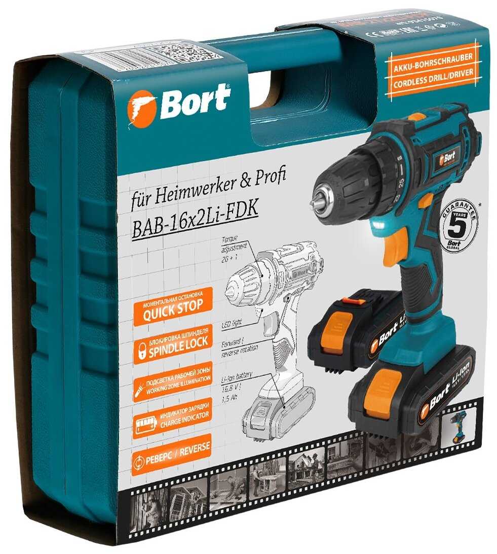 Аккумуляторная дрель-шуруповерт Bort BAB-16x2Li-FDK — 86 отзывов, плюсы и минусы
