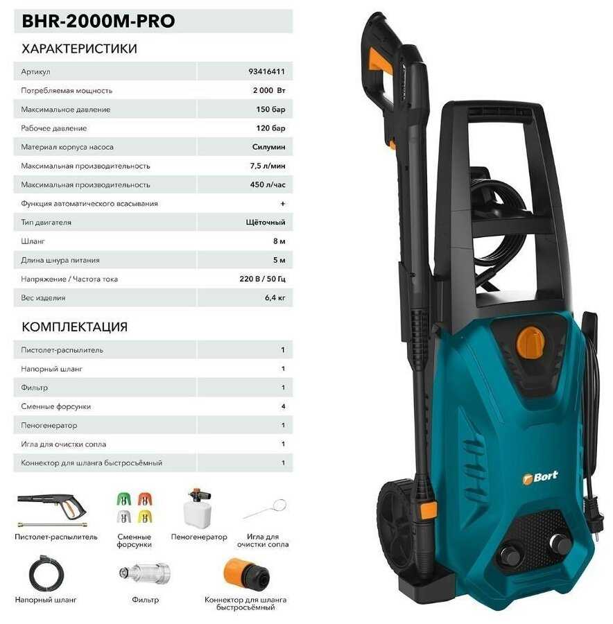 Отзывы о Мойка высокого давления Bort BHR-2000M-Pro, 150 бар, 450 л/ч
