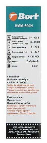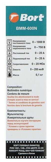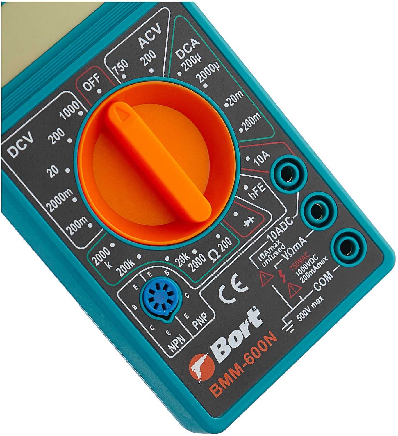 - + Мультиметр цифровой BMM-600N удобный прибор для работ в быту. Ни чего лишнего, самые основные функции в работе в электрических сетях и электросхемах переменных и постоянных токов.