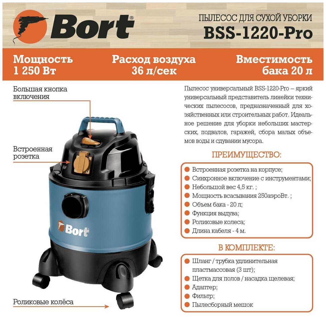 Отзывы о Пылесос промышленный Bort BSS-1220-Pro