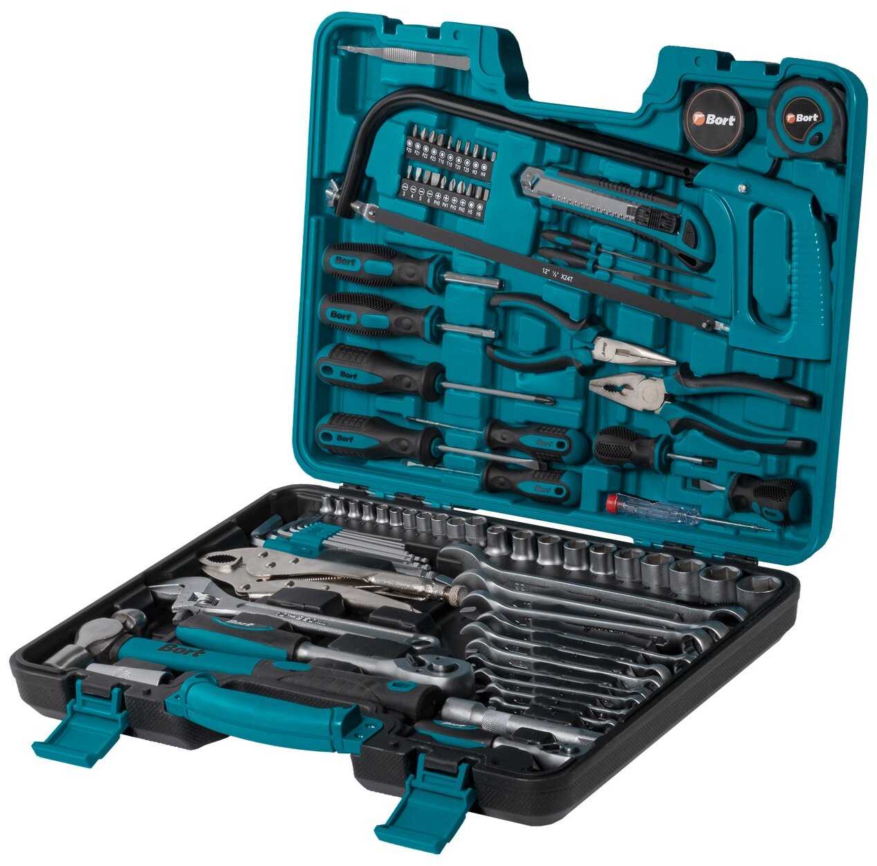Искал набор инструментов чтоб были в комплекте и разводной ключ и губцевый инструмент. Остановил свой выбор на этом наборе. Не так их и много было. BORT на слуху по крайней мере. Инструмент выглядит надежным, кейс довольно тяжелый. Подойдет и для авто и для дома/дачи, универсальный набор. Выбором доволен.