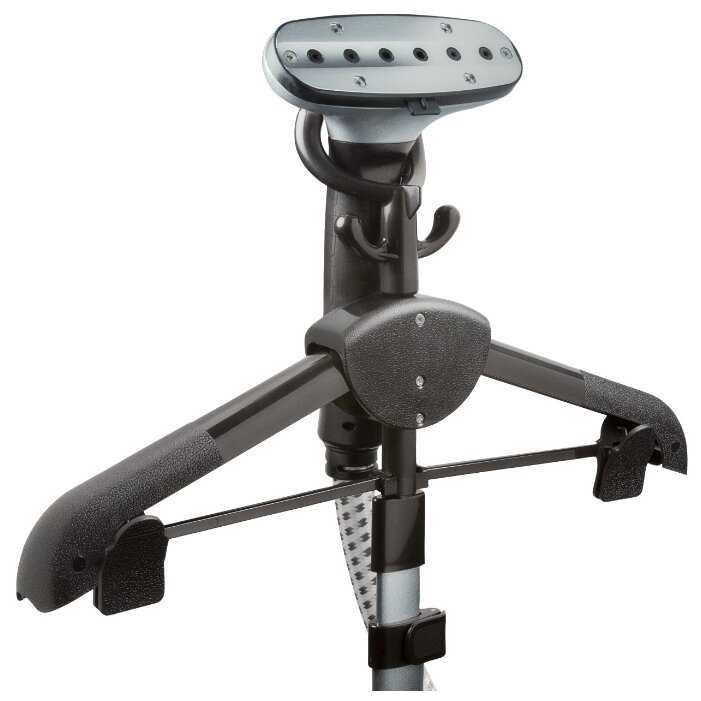 Хлипковатая конструкция плечиков, но я отпариваю на обычной деревянной. Нет ручки-переноски, но не критично, везу по полу за штангу. Коротковат шланг, при отпаривании занавесок приходится ставить на стул или стол, но и к этому приспособиться можно. В принципе на глаза не попадались отпариватели с более длинным шлангом.