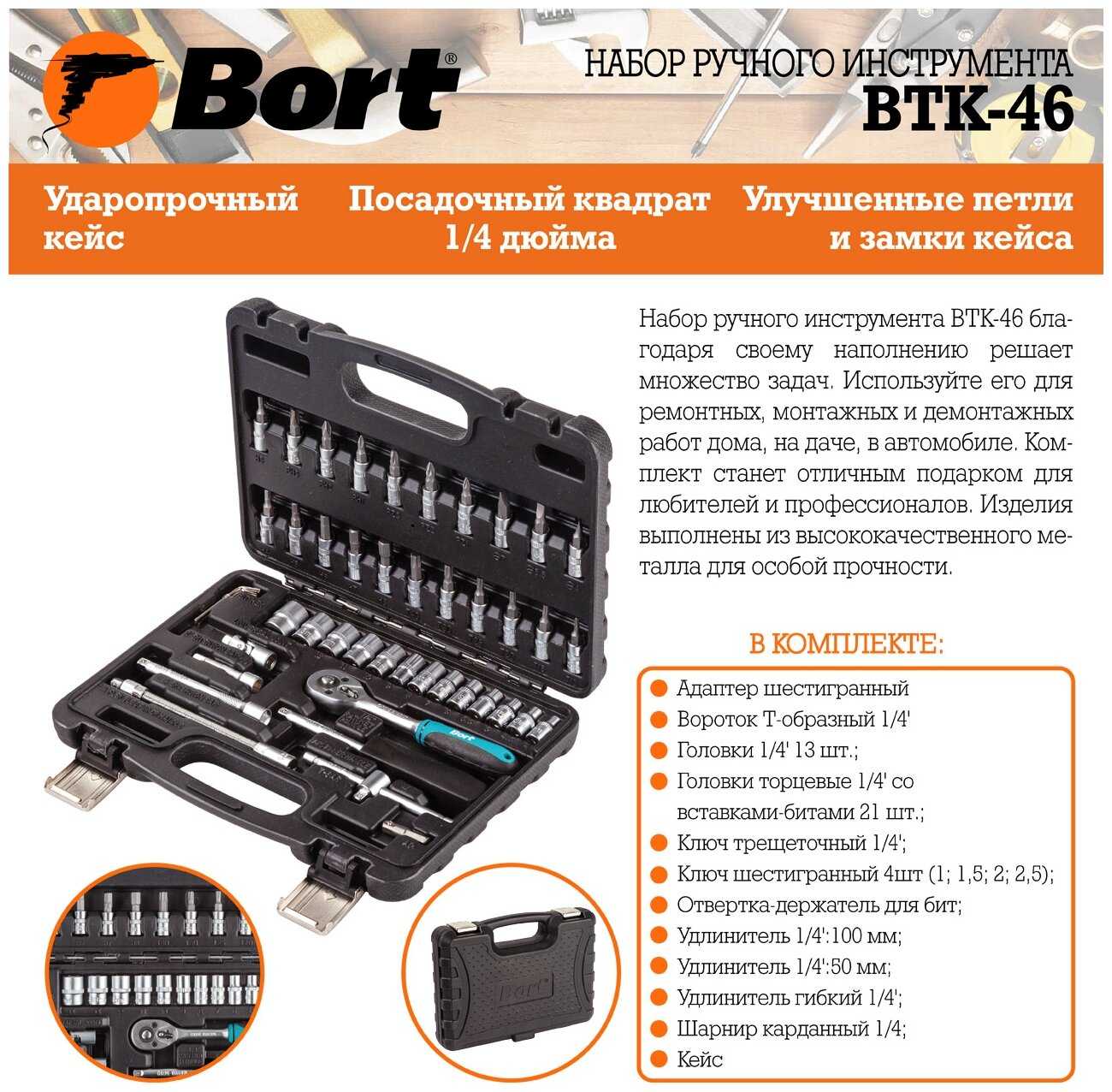Дополнительная информация : | Набор инструментов Bort BTK-46, 46 предметов |
