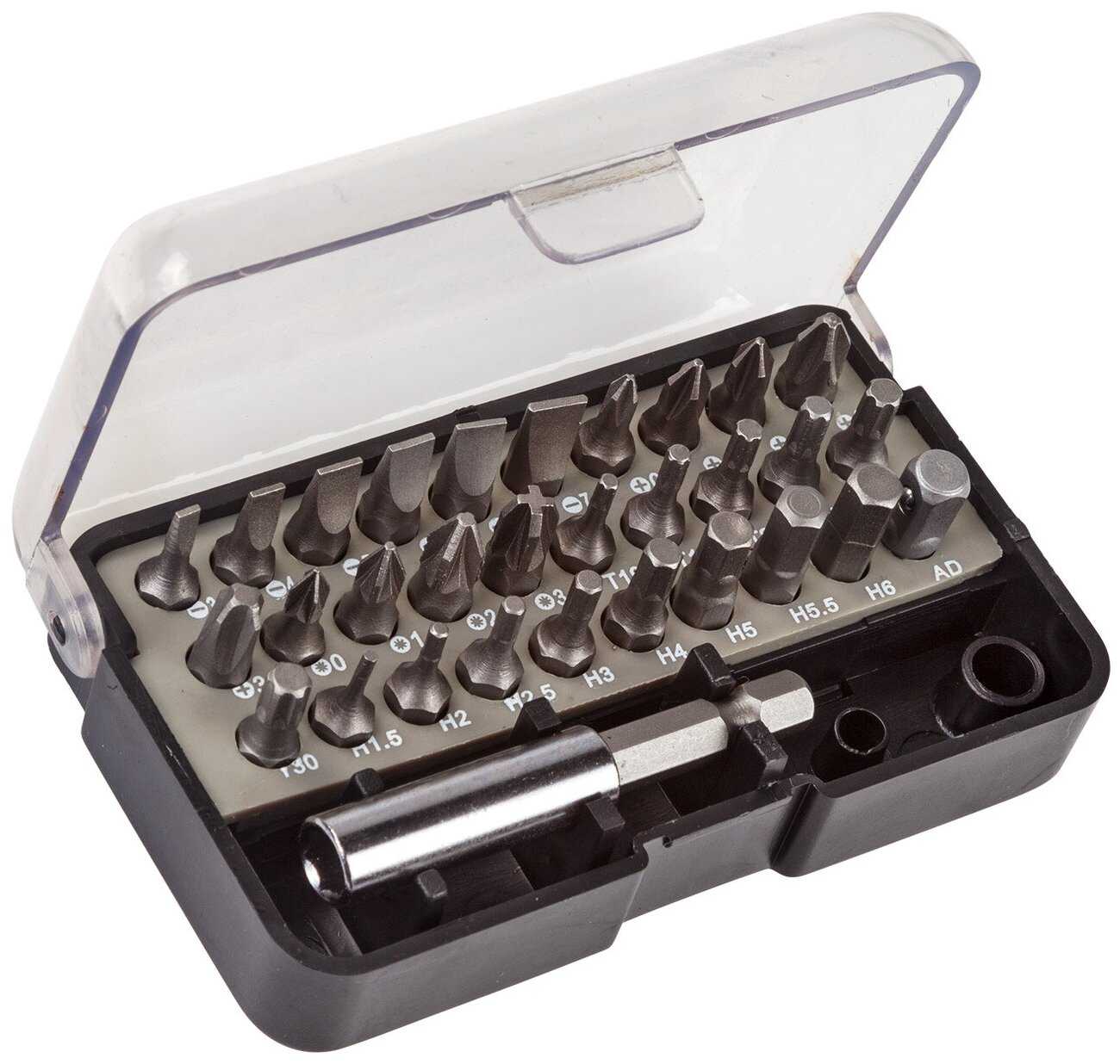 Биты подробно : | SL 3, 4, 5, 6, 7, PH0, PH1, PH2, PH3, PZ0, PZ1, PZ2, PZ3, T10, T15, T20, T25, T27, T30, H1.5, H2, H2.5, H3, H4, H5, H5.5, H6, AD |