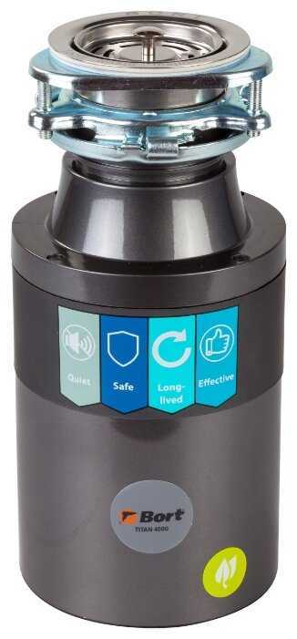 Установил вместо умершего после 15 лет службы InSinkErator Model 65. Кнопку, слив раковины, отводную трубу менять не пришлось -- совместимы. Bort существенно тише работает. При подключении посудомойки загляните в инструкцию: в Bort для этого необходимо выбить перегородку.