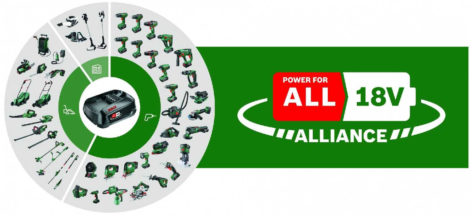 - Один аккумулятор и зарядное устройство работают со всеми инструментами линейки Bosch DIY и садовой техникой.