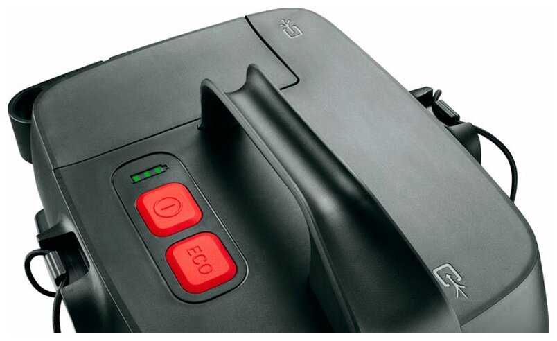 Без аккумулятора ручная часть весит 900 г, в сборе с телескопической трубкой и насадкой — около 1,3 кг. Такой вес позволяет комфортно удерживать устройство одной рукой даже при работе над головой (например, при чистке потолков) без быстрой усталости. -