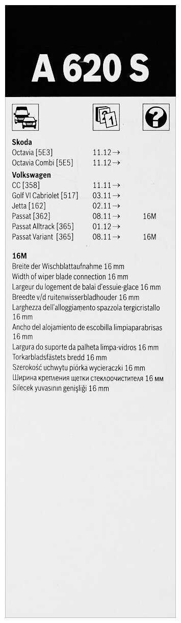 Π₯Π°ΡΠ°ΠΊΡΠ΅ΡΠΈΡΡΠΈ BOSCH Aerotwin A620S (2 ΡΡ.)
