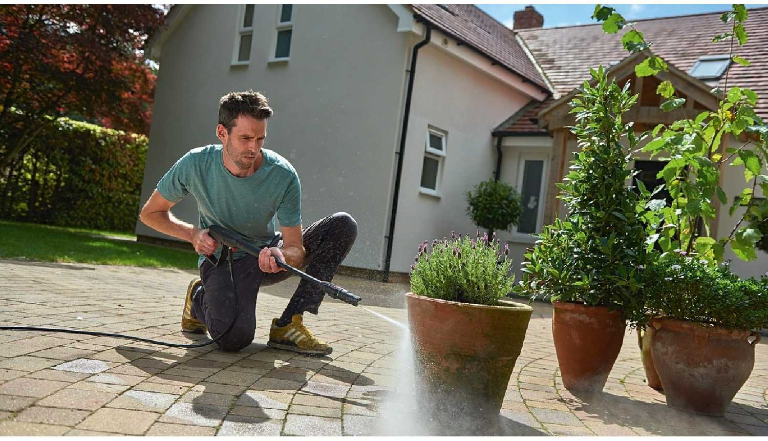 Хватает ли мощности и давления для бытовых задач: мытья машины, фасада, садовой плитки?