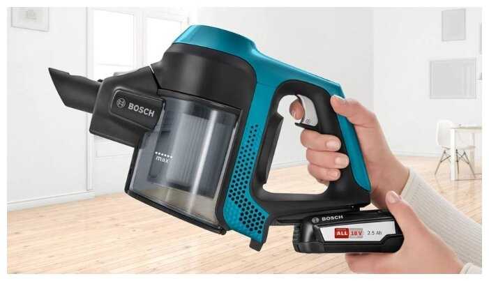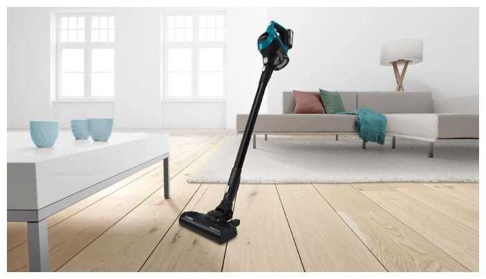 - Конструкция с узким корпусом (ширина 25 см) и весом 2,5 кг позволяет легко перемещать пылесос даже в узких пространствах.