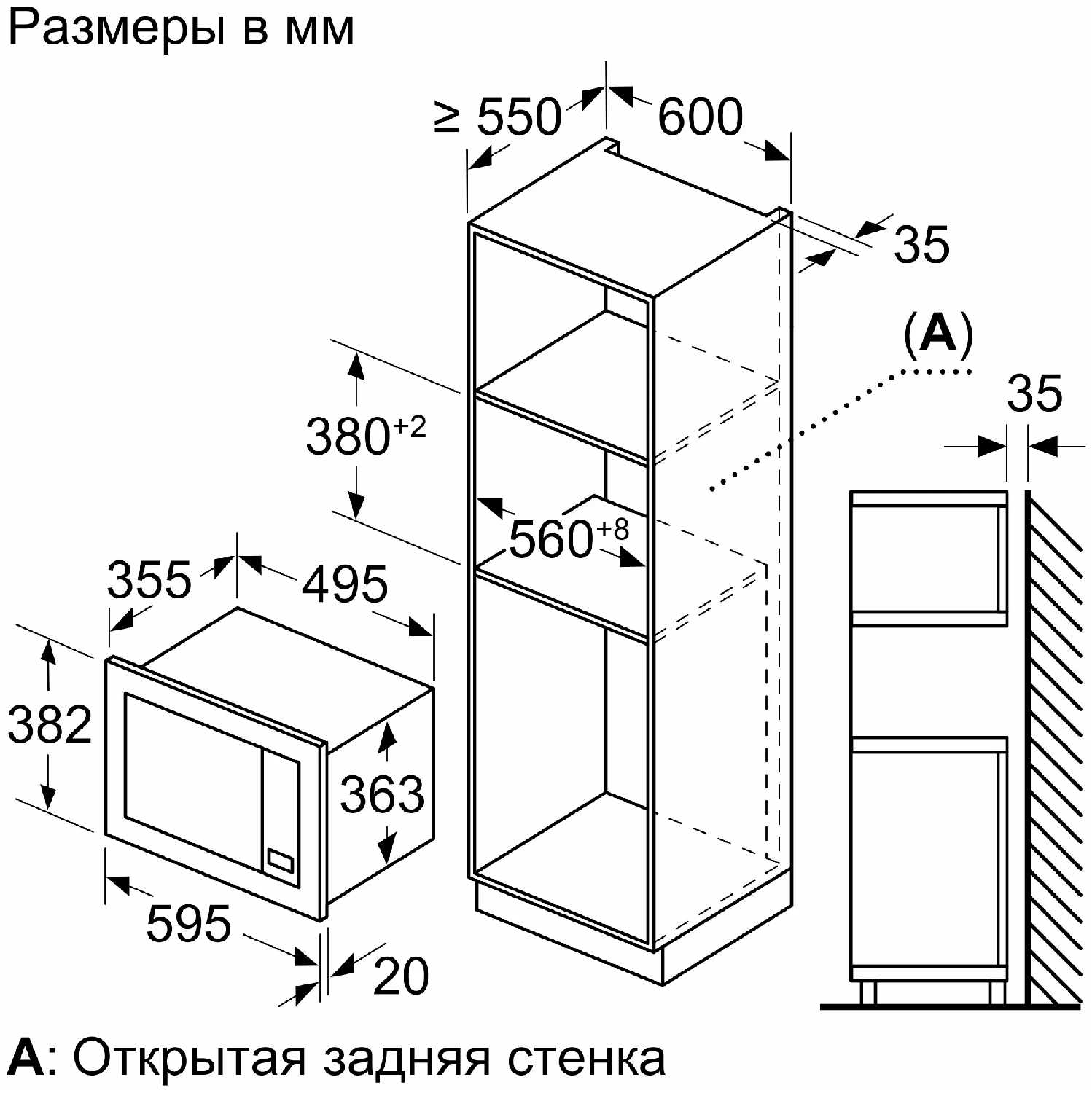 | Дополнительная информация : | размеры ниши для встраивания (ВхШхГ): 362 мм - 365 мм x 560 мм - 568 мм x 320 мм |