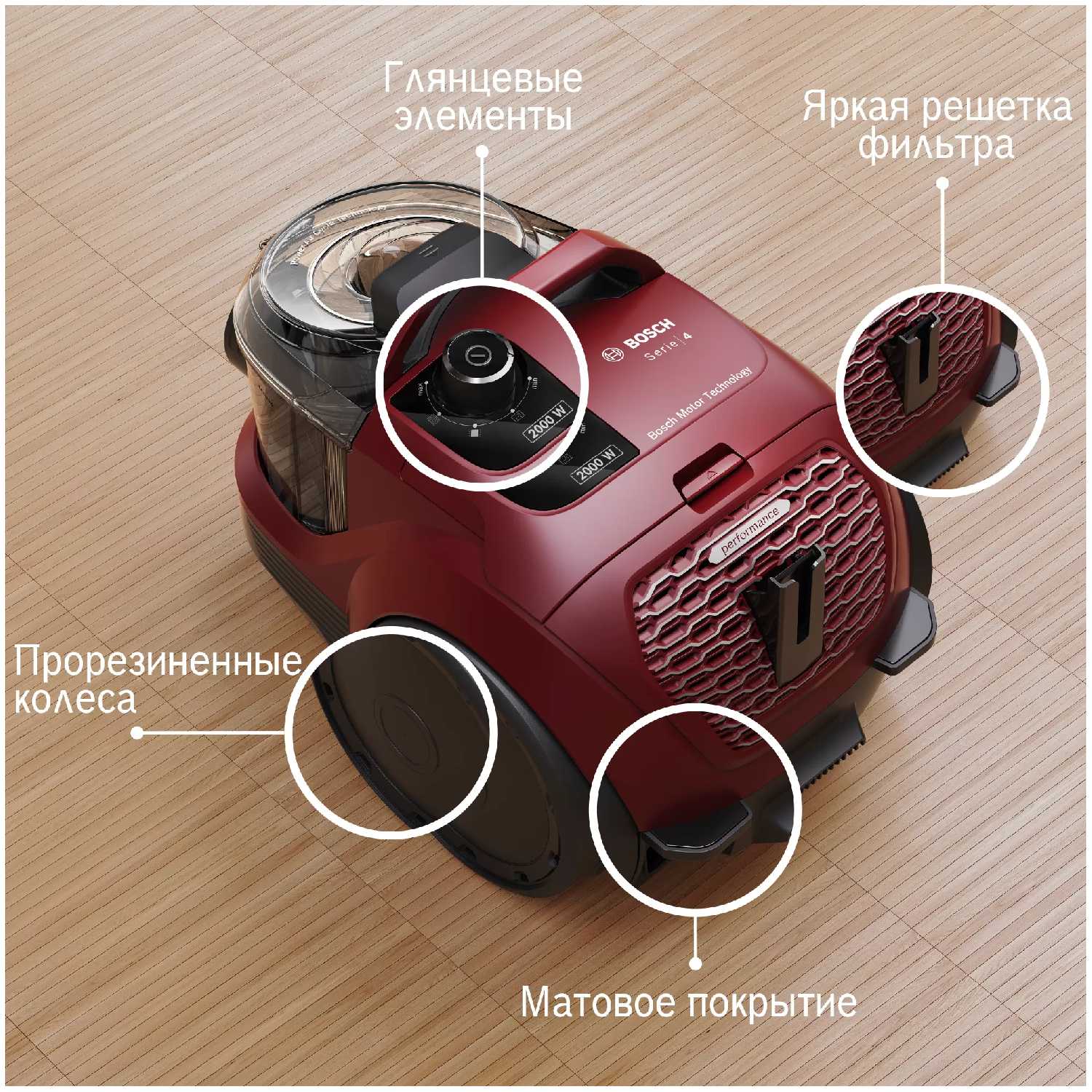 Неплохо тянет. Все фильтры - моющиеся. Даже HEPA. Хотя в старом Боше стоит вроде такой же, но по инструкции его мыть нельзя. Наглядно видно сколько мусора насосалось в контейнер. Выглядит красиво. По факту не просто красный, а скорее вишнево-бордовый.