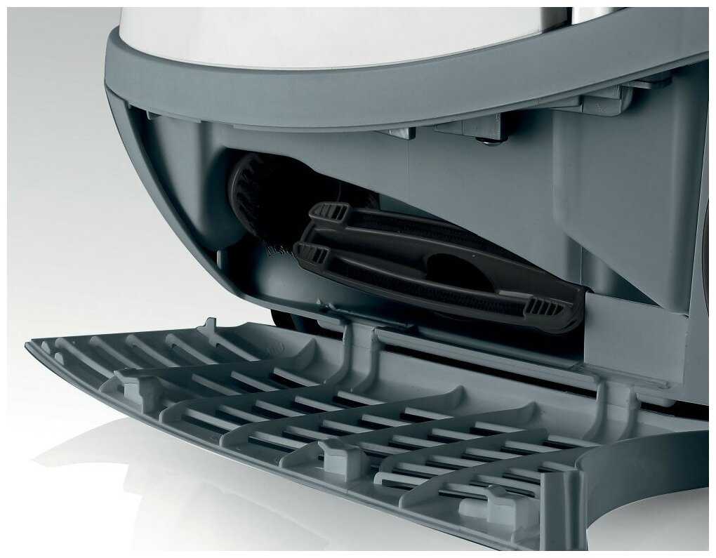2) аквафильтр это ведро, которое легко вынимается. При влажной уборке или при сухой через аквафильтр вся грязная вода остается внутри ведра. После уборки достаем ведро, вынимаем из него одну деталь и моем под краном. На корпус пылесоса грязь не попадает (кроме короткого участка трубы). - - 1) очень хилый корпус. Крышка, закрывающая ведро, защелкивается у петель и шатается. Ручка пылесоса именно на этой крышке поднимать страшно, обязательно отломится. Другой ручки нет, приходится катать за шланг.