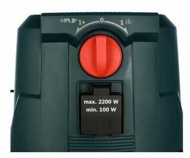Розетка на корпусе позволяет пылесосу включаться одновременно с запуском инструмента (например, пилы или фрезера) и отключаться с задержкой 5–6 секунд для досасывания остатков пыли. В режиме ожидания подаётся пониженное напряжение, достаточное для питания лазерных указателей инструментов. Однако при работе на малых оборотах (например, сверлении) срабатывание может быть некорректным. -