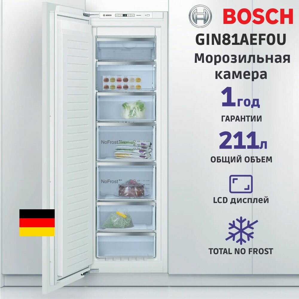 Отличный морозильник. Брал как выгодный комплект, за пол цены. Быстро морозит, есть датчик температуры. В шкаф не встраивал, стоит как дополнительный морозильник в кладовке.