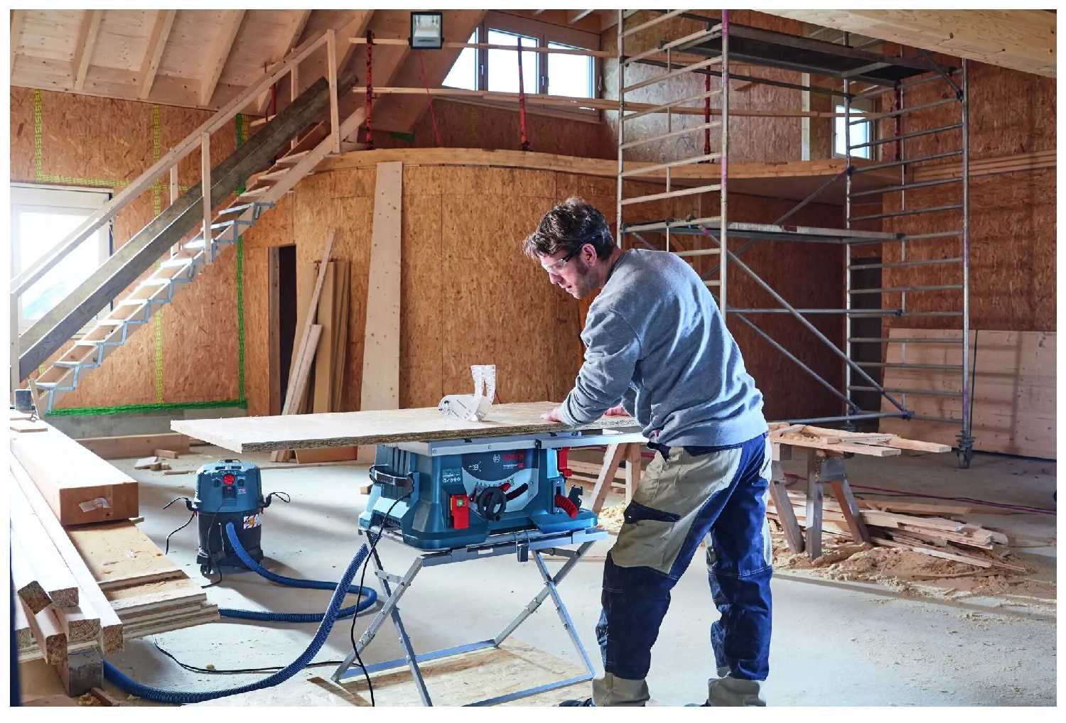 Двигатель уверенно пилит мягкую древесину, фанеру и ДСП толщиной до 50 мм при умеренной подаче. Для твёрдых пород (дуб, ясень) оптимальная толщина — 30-40 мм. При длительной работе с заготовками от 40 мм возможна просадка оборотов и перегрев — в таких случаях лучше выбрать GTS 10 XC с 2000 Вт. -