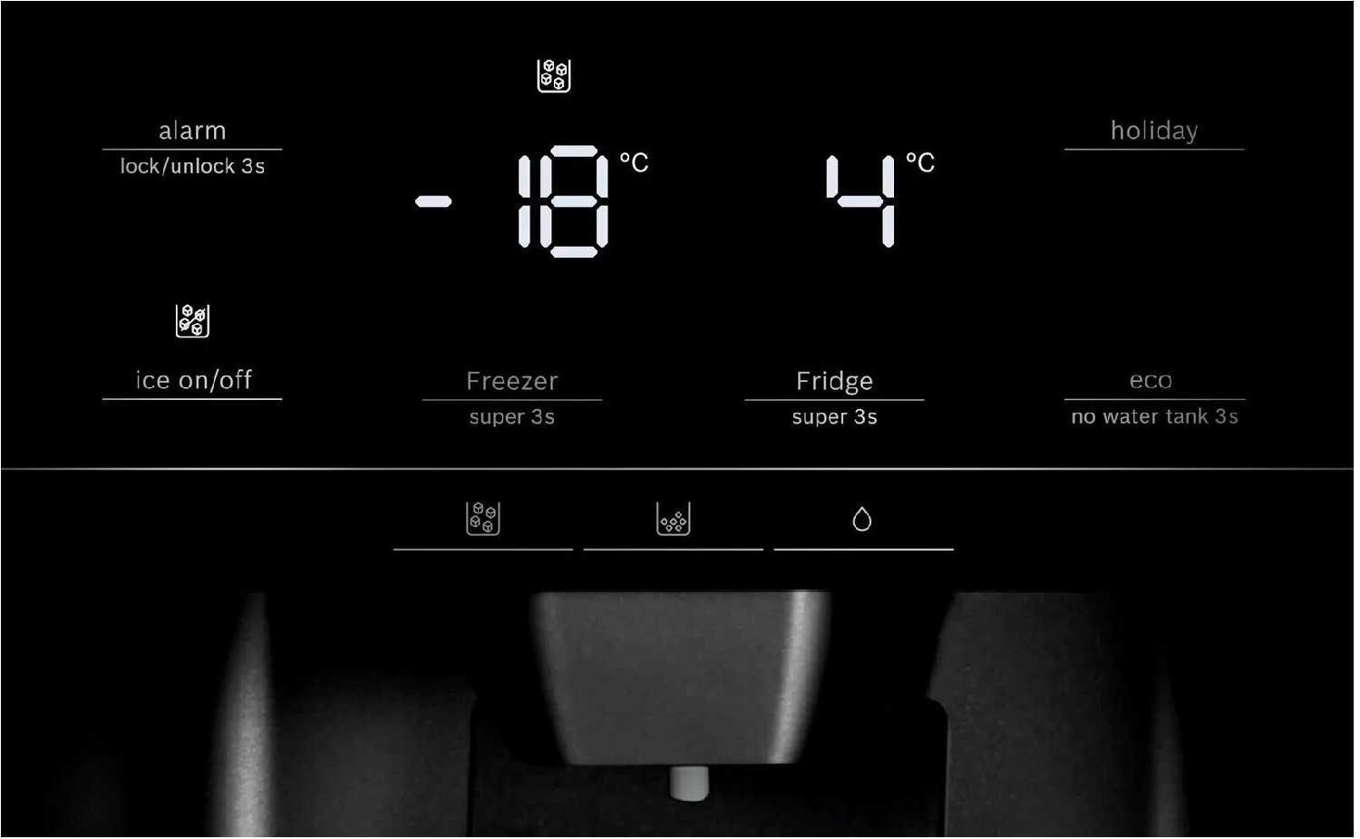 Дополнительные функции : | защита от детей, индикация температуры, льдогенератор, система подачи холодной воды |