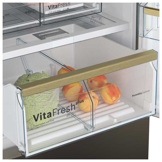 Нижние камеры холодильника под овощи выдвигаются легко, не блокируясь конструкциями двери (т.е. дверь не обязательно открывать больше, чем на 90 градусов).