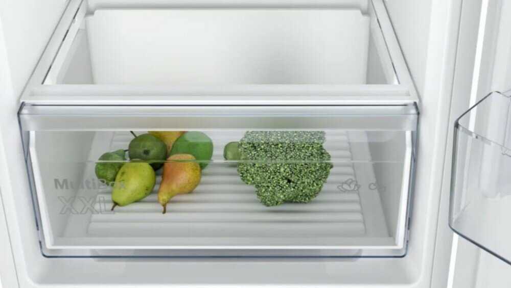 - + Крепкий пластик в контейнерах морозилки. Полки основательные, сколько использую, не замечала, что они прогнулись под полной сковородкой еды. Ящик под овощи продуман