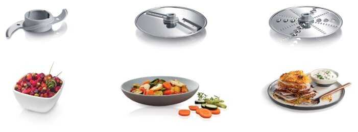 - Функциональность можно расширить за счет дополнительных дисков (например, для нарезки кубиками).