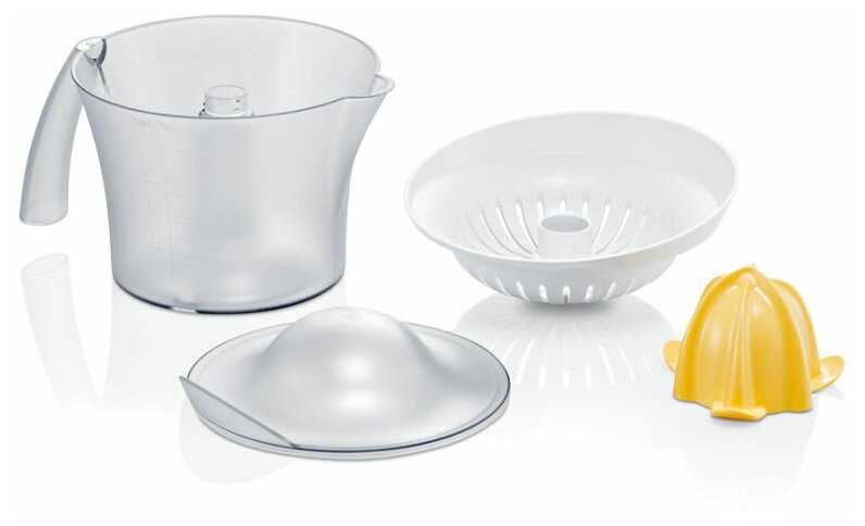 | Дополнительная информация : | количество конусных насадок: 1, резервуар для сока: встроенный, съемные детали можно мыть в посудомоечной машине включение при нажатии на конус |