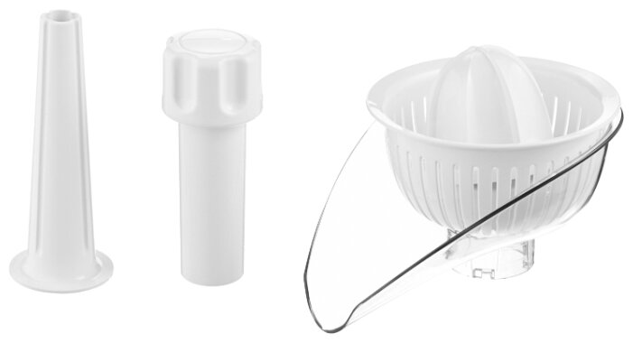 - Насадка для цитрусовых (диаметр 8 см) выжимает до 85% сока, не дробит перегородки.