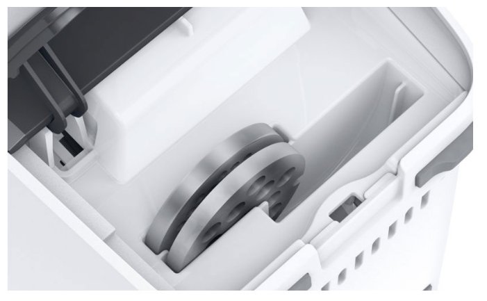 - Встроенный отсек для хранения решёток и ножа (диаметром 6 см) экономит место.