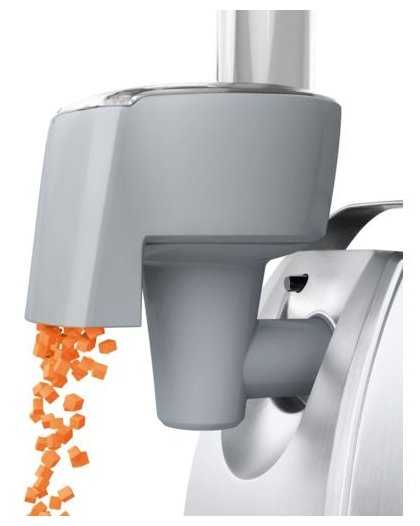 - Насадка для нарезки кубиками (8x8 мм) идеальна для салатов (оливье, винегрет), сырых овощей и фруктов.