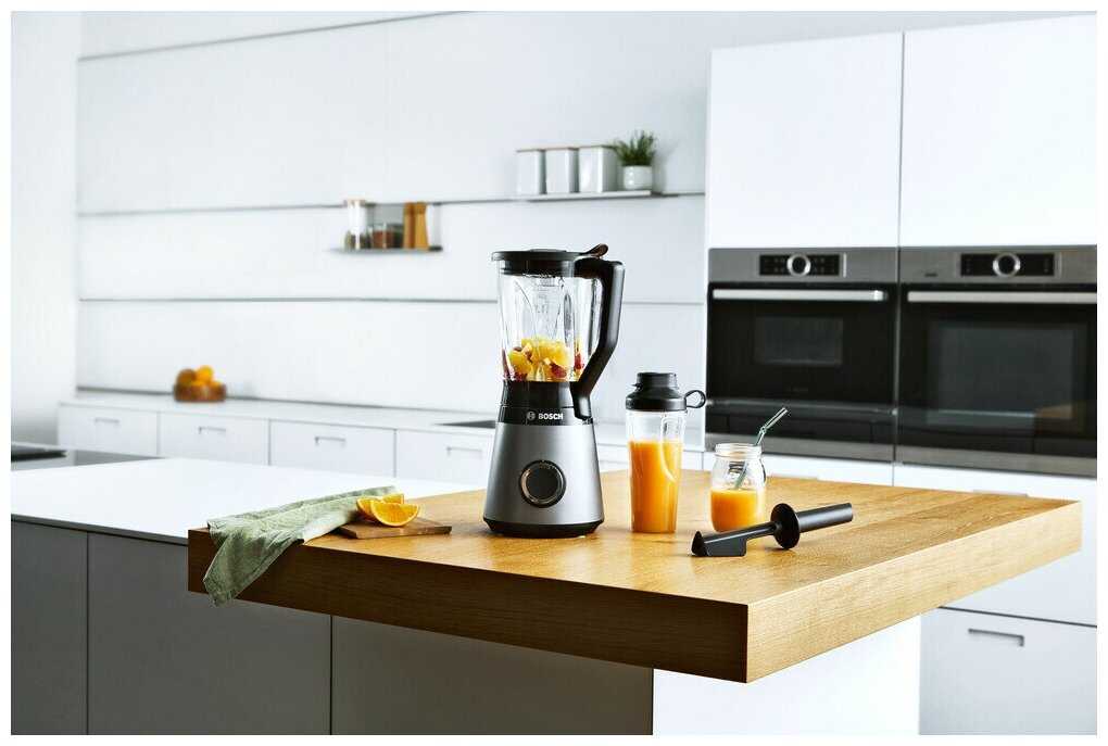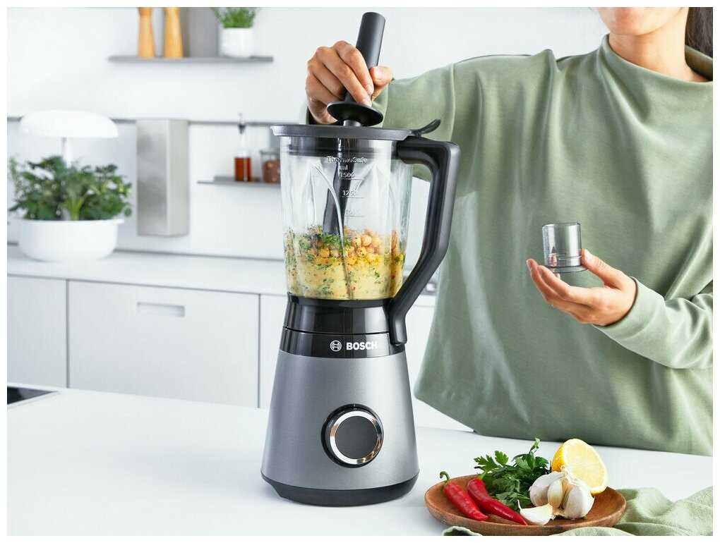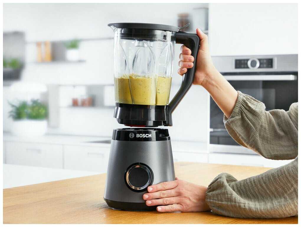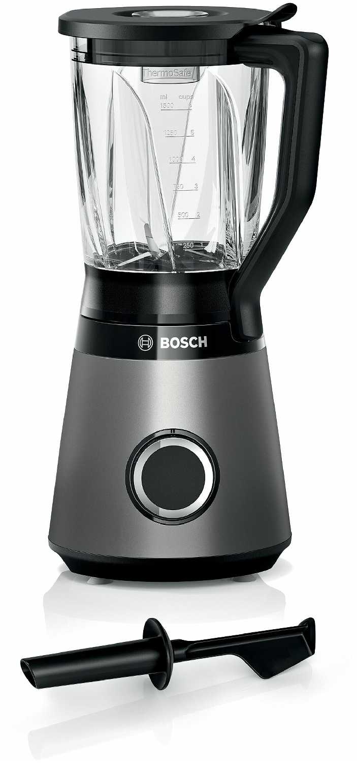 | Дополнительная информация : | Надежный двигатель Bosch: мощность 1200 Вт со скоростью вращения до 30 000 об/мин. Лезвия ProEdge, изготовленные в Золингене, и технология EasyKlick: нежная текстура смузи и простота очистки ножа. Стеклянный кувшин для блендера ThermoSafe с 3D ускорителями потока: термостойкий кувшин, объем 1, 5 л. |
