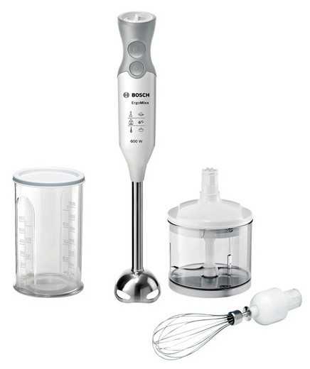 - Блендерная ножка, венчик, измельчитель 0,45 л, мерный стакан 0,6 л с крышками для хранения в холодильнике.