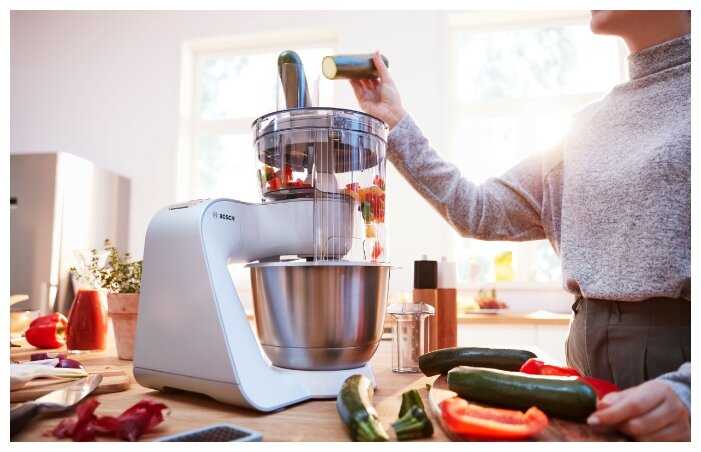 Пользуюсь 3 месяца, эксплуатирую по полной и каждый раз радуюсь. Моя лучшая помощница на кухне! До неё были комбайны: Витек - прослужил верно лет 10 и Мулинекс-года 2, сточилась пластиковая ось. Пока выбирала новый, наткнулась на Бошу, устроила цена - недорого и главное есть чаша для замешивания, много стряпаю. Тесто замешиваю любое! Раньше пельменным занимался муж. Сливки взбивает на отлично! Мясорубка - одно удовольствие, крутит без проблем. Кроме этого, все функции, которые были в комбайнах: трёт, шинкует, режет слайсами. А места на кухне занииает меньше, чем прошлые комбайны. Короче, покупкой очень довольна, ни разу не пожалела, что взяла.