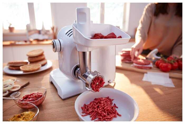 2. Хорошо продумана мясорубка. Она спроектирована таким образом, чтобы исключить протечки с обратной стороны. Качество фарша лучне, чем на предыдущем комбайне. Мощности волне хватает.